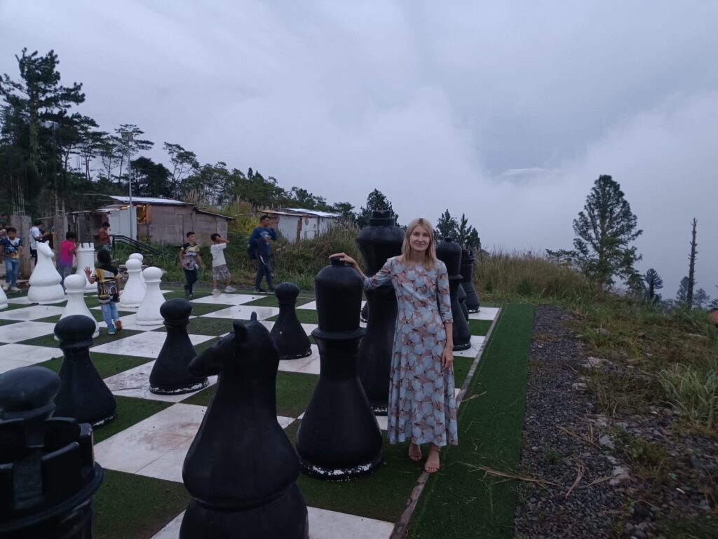 После входа в Asenso Global Gardens участников ждало множество ступенек, а на самом верху — огромная шахматная доска и симпатичный арт-объект в форме сердца.