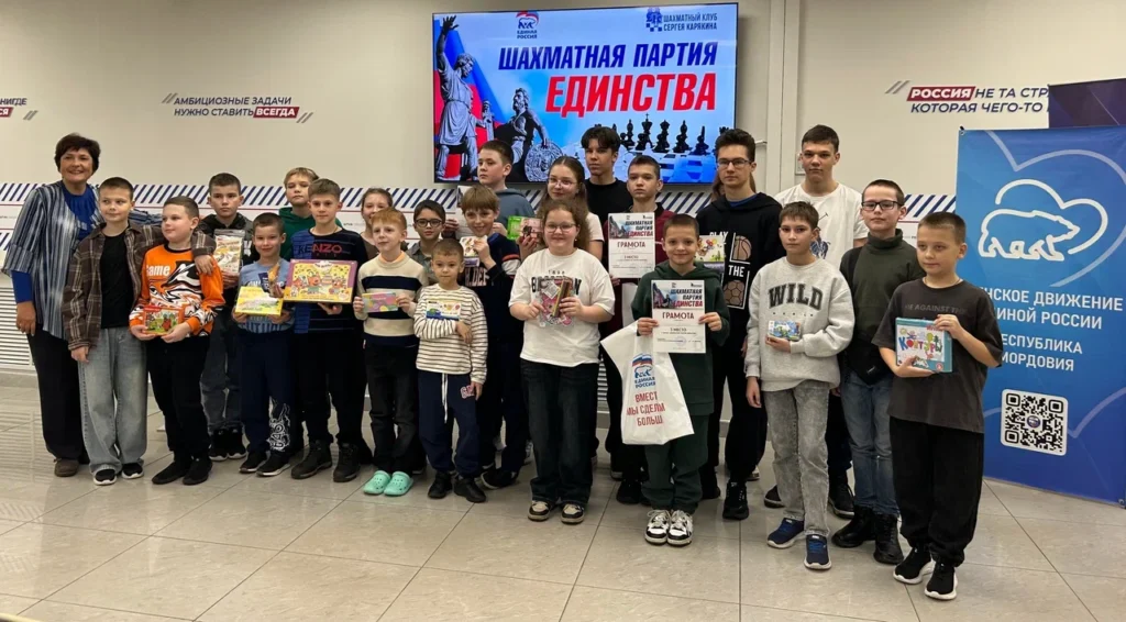 С 27 октября по 9 ноября в Шахматных клубах Сергея Карякина, действующих на площадках Партии «Единая Россия» в регионах России и в Русских домах за рубежом, состоялась Всероссийская акция «Шахматная партия единства», приуроченная ко Дню народного единства. Особенно масштабно акция прошла в городах Московской области на базе только что открывшихся клубов в рамках проекта «Шахматы для СВОих», а также Ростовской, Белгородской, Волгоградской, Херсонской и Курской областях, Краснодарском и Приморском краях, а также в Республиках Татарстан, Башкортостан, Северной Осетии и Донецкой Народной Республике. Также к акции присоединились Русские Дома в Иордании, Замбии, Палестине, престижная школа «Дипломат» в Таиланде и многие другие.