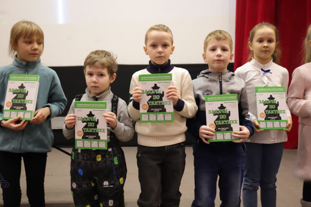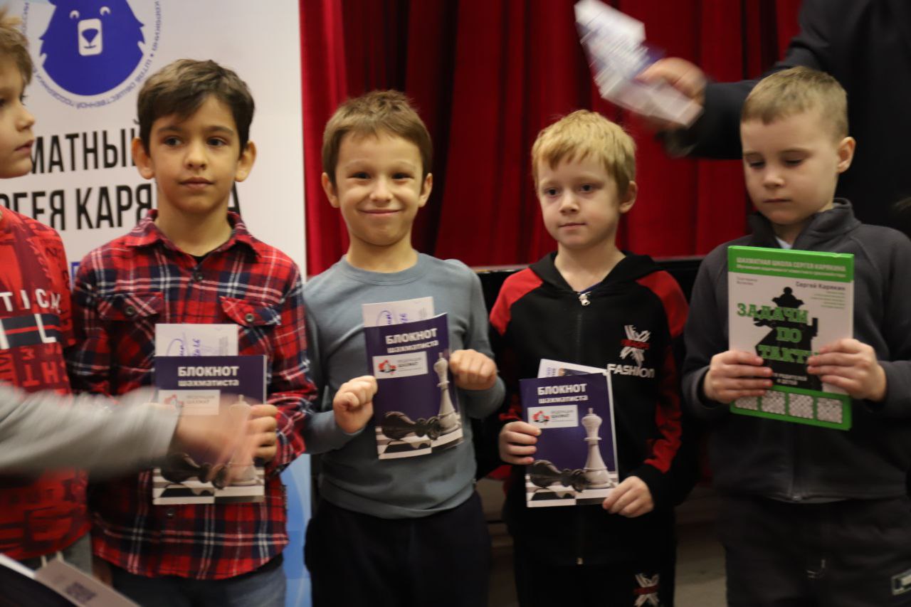 Победители и призеры получили кубки, грамоты и медали, а все ребята – шахматные книги, блокноты и карточки с автографом Сергея Карякина.
