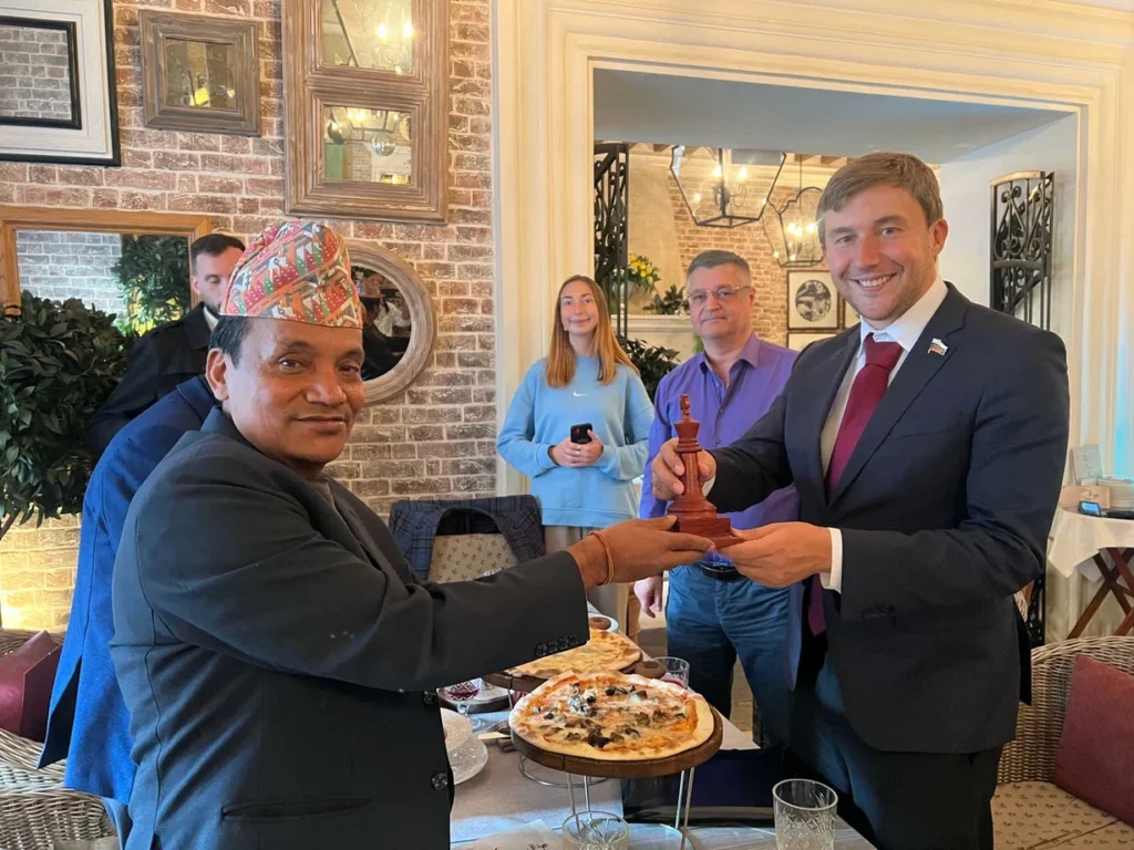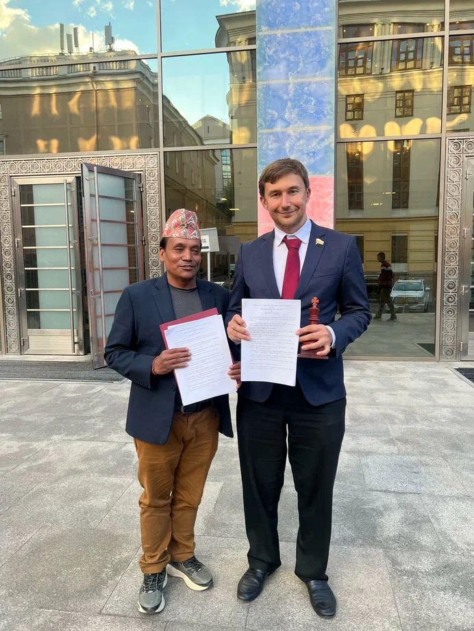 Не менее важным событием в запоминающейся поездке по России для делегации Непала стала и встреча в Совете Федерации Федерального собрания Российской Федерации с сенатором от Республики Крым, президентом Федерации шахмат Московской области, многократным чемпионом мира, международным гроссмейстером Сергеем Карякиным. По итогам встречи состоялось торжественное подписание Меморандума о сотрудничестве между Федерацией шахмат Московской области и Шахматной федерацией Непала, в котором были отражены амбициозные планы двух федераций на будущее сотрудничество.