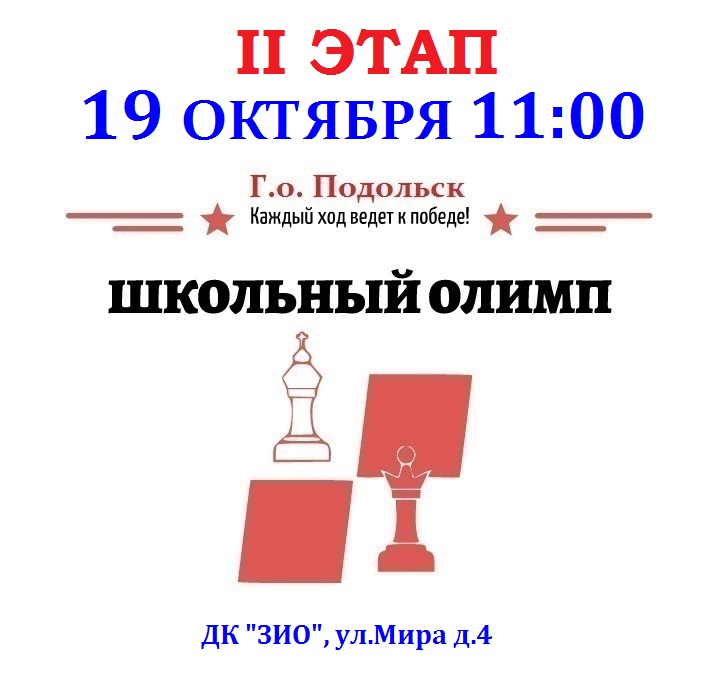 19 октября в Подольске пройдет II этап серии по быстрым шахматам «Школьный Олимп»