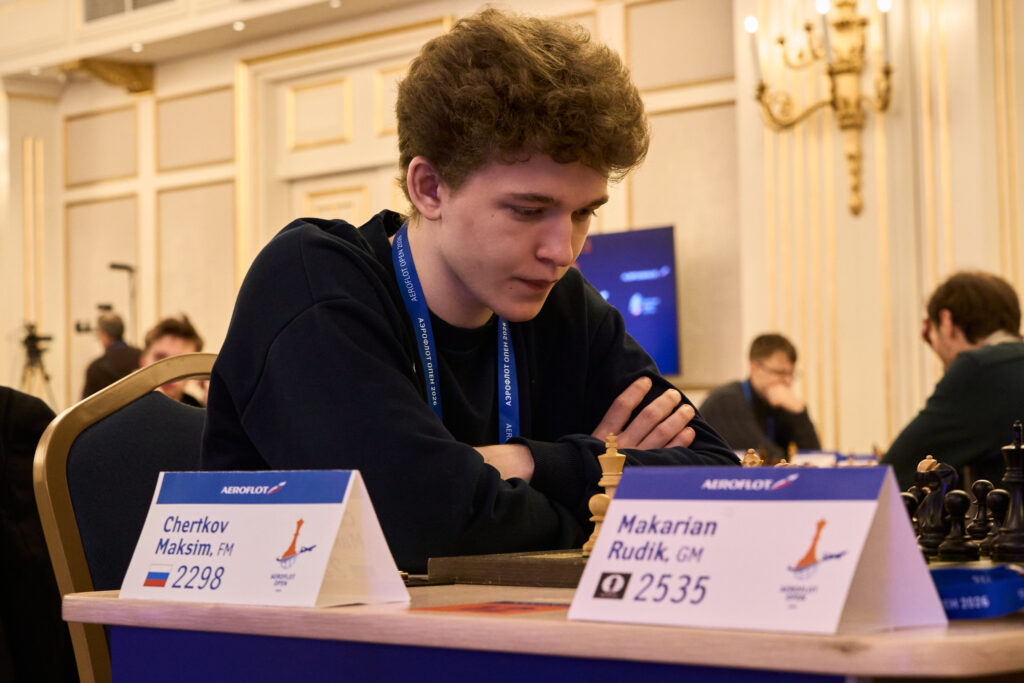 Так же бодро начали «Аэрофлот» два других подмосковных шахматиста – по 2,5 из 3 набрали Борис Савченко и Максим Чертков. Вот только оба, увы, уступили в 4-м: победитель «Короны» Панкратову, а молодой – Паравяну. Зато 3 из 4 у Исаака Паприева, который в последнем туре одолел экс-семисотника Санана Сюгирова.