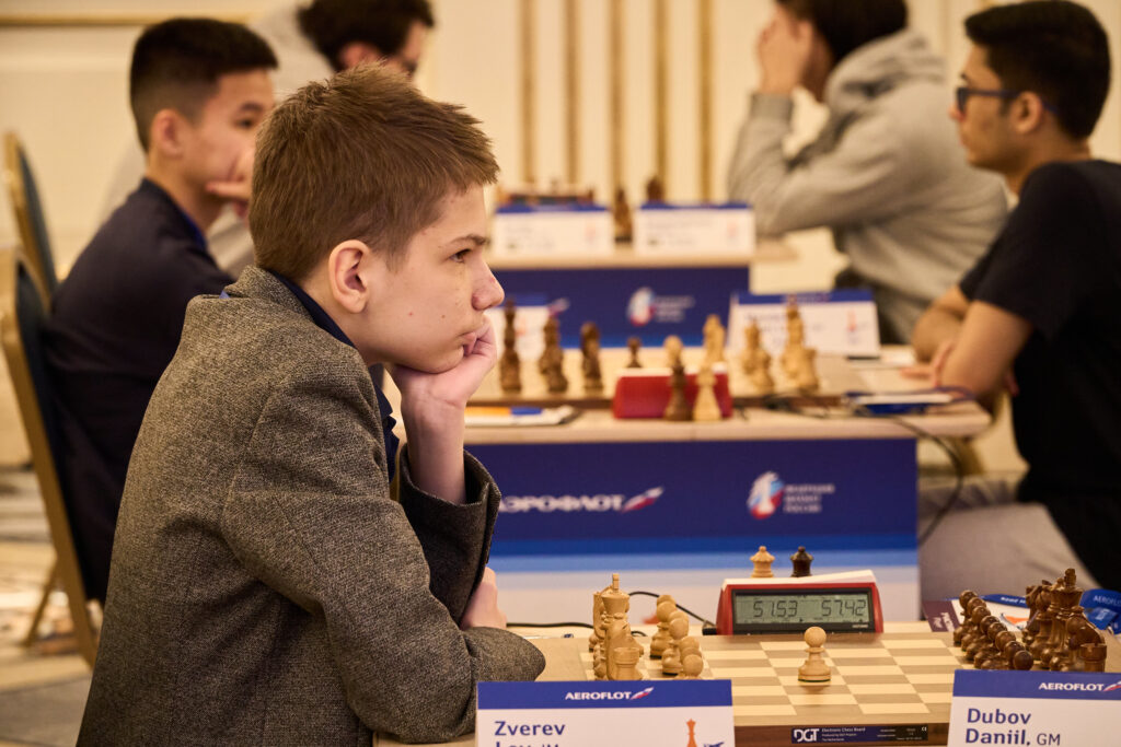 Столько же оказалось у шестерки опытных гроссмейстеров: у Александра Грищука, Арсения Нестерова, Давида Паравяна, Павла Понкратова, Рудика Макаряна, Арама Акобяна и… 16-летнего международного мастера Льва Зверева. Один из лучших юношей Подмосковья выдал просто-таки феерический старт! Всего-то 60-й стартовый номер (2453), он начал с уверенных побед над Вершининым и Рязанцевым, затем в головоломной борьбе чуть не одолел Паравяна, а затем без остановки одержал и третью заслуженную победу – над Мартиросяном.