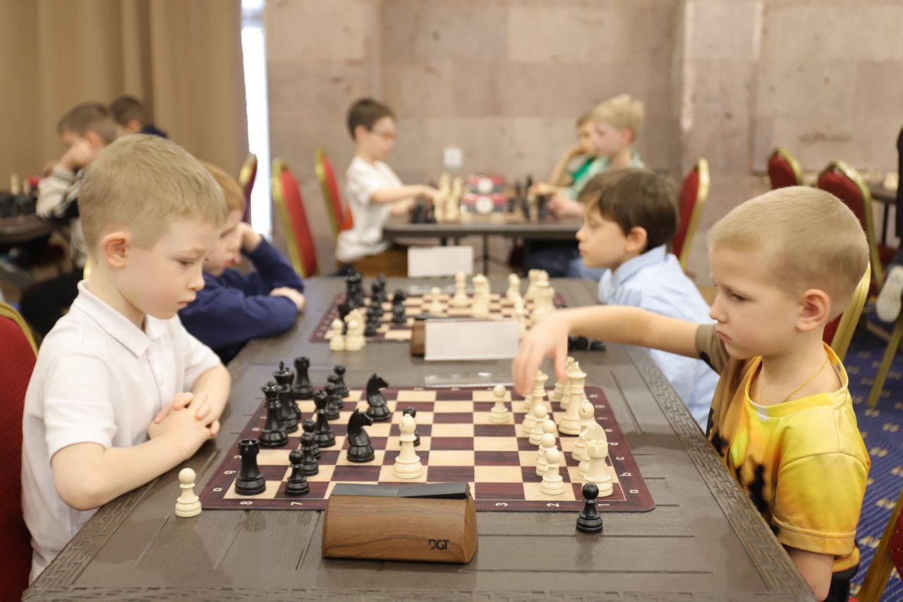 Только вчера в Парк-отеле Амакс «Ершово» определились чемпионы в классической дисциплине, а сегодня самые юные шахматисты пробуют свои силы в рапиде. Занявшие места с первого по восьмое у мальчиков и девочек получат право сыграть в Первенстве России по быстрым шахматам до 9 лет.