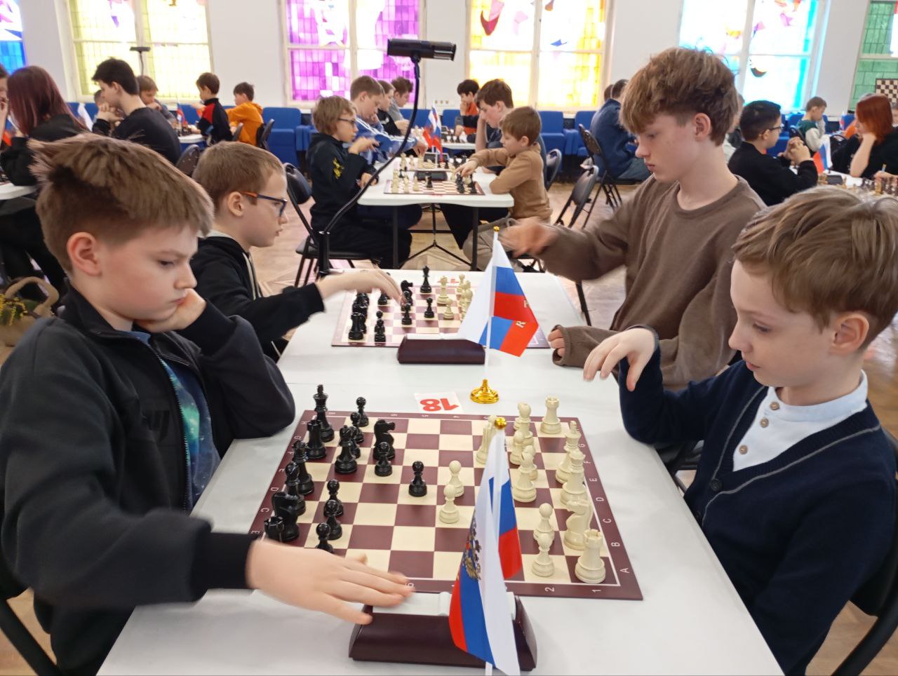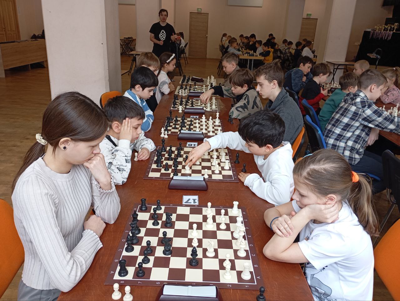 Праздничный день собрал за досками юных интеллектуалов не только из Московской области, но и из соседних регионов. Соревнования проходили в четырех группах, где кипели нешуточные страсти.