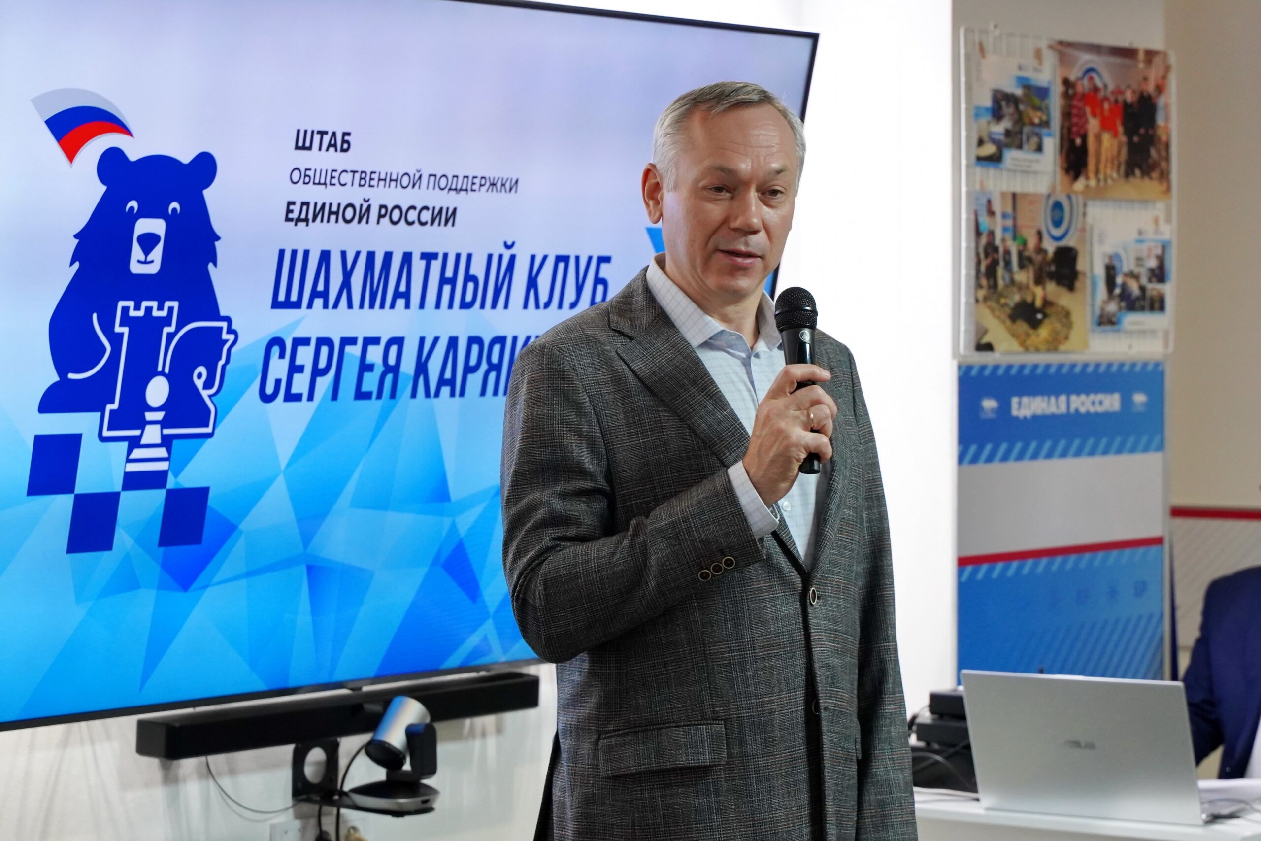 7 декабря вместе с губернатором Новосибирской области Андреем Травниковым Сергей Карякин дал старт работе клуба в Штабе общественной поддержки партии «Единая Россия» в Новосибирске